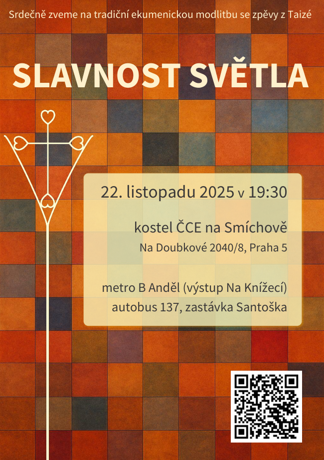 V sobotu 22. listopadu od 19:30 zveme do smíchovského sboru ČCE na tradiční Slavnost světla. Jedná se o ekumenickou a zároveň největší modlitbu Taizé v Praze.
