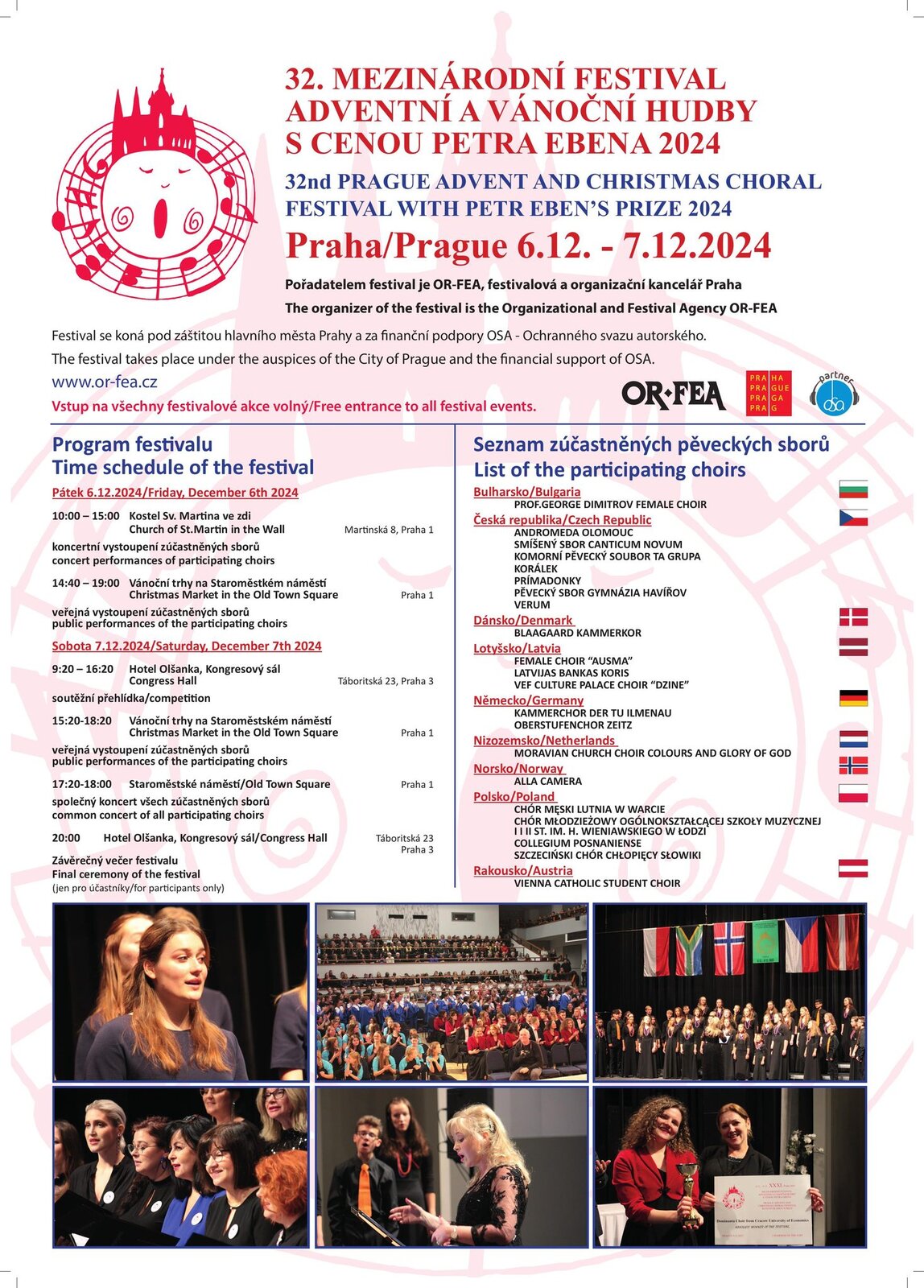 veřejná vystoupení zúčastněných sborů – public performances of the participating choirs Vánoční trhy Staroměstké náměstí/Christmas Market on the Old Town Square, Praha 1 |