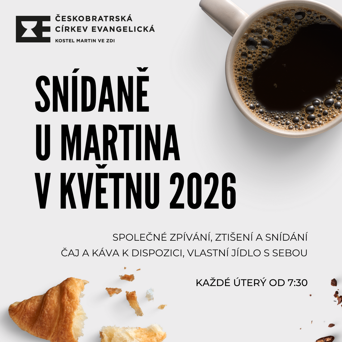 Snídaně s pobožností se u Martina ve zdi v květnu 2026 budou konat každé úterý od 7:30.